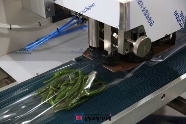 고추, 부추, 무, 쌈배추, 상추등 다양한 야채, 채소를 포장하는 전용 자동포장기 일명 삼면포장기를 제작하고 여기에 인쇄필름을 사용할수 있는 아이마크까지 장착을 해서 납품을했습니다