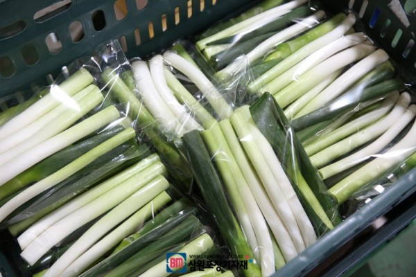 아다치컨베어에서 공급된 대파는 필름이 싸여져서 센터실링후
