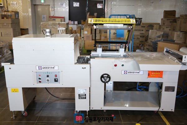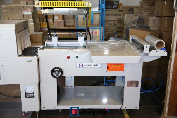반자동수축포장기는 작업자가 포장할 제품을 수축필름에 넣어주는 작업후 실링과, 수축포장은 자동으로 이러지는 포장기계로 작업자의 손이 일부거치기 때문에 반자동 수축포장기라고 합니다