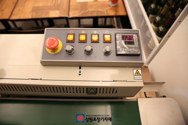 원하는 온도를 설정할수 있는 디지탈온도계가 달린 삼원포장의 밴드실러는 컨베어속도와 날인위치를 조절할수 있고 간단한 조작방법으로 사용하시기 쉽습니다.