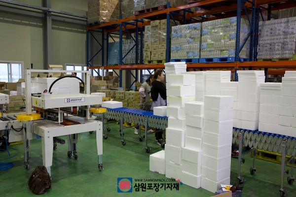 헤드 높이조절뿐아니라 상부로럴, 사이드롤러등이 있어서 진입시 스티로폼 박스가 파손되지 않고 부드러운 진행이 가능합니다.