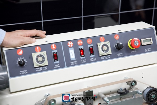 이 밴드실러의 장점은 파우치가 크기에 따라 컨베어를 70mm까지 넣었다 뺐다 하면서 폭 조절이 가능하구요