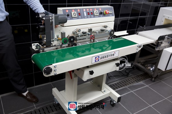 밴드실러는 비닐포장용기를 접착할때 사용하는 포장기계로 포장파우치가 큰제품은 대형밴드실러로 날인과 실링을 한번에 해결할수 있답니다.