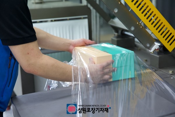 제품을 수축필름에 넣고 약간의 여유공간을 남겨두고 올려놓은 다음