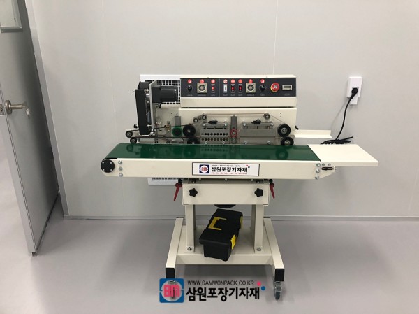 제품을 세워서 포장하는 파우치에 적합한 실링기로 날인기능(인자기)까지 함께 포함한 밴드실러입니다