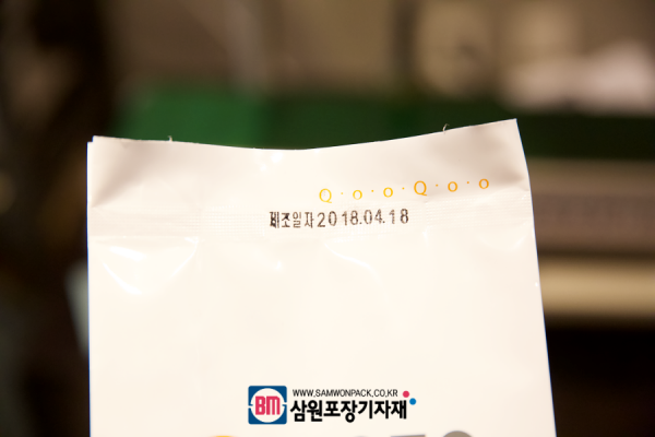 이렇게 정량 중량해서 배출된 원두는 파우치에 담겨져서 일명 실링기라 불리는 밴드실러로 실링, 날인등의 과정을 거쳐 비닐접착 및 제조일자, 유통기한, 까지 등의 인쇄가 되어 완성되게 됩니다.