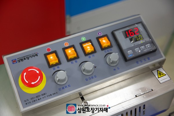온도조절을 위해 디지탈계기판이 적용되었고 컨베어 속도, 고체잉크 온도와 인쇄위치, 비상정지스위치등을 콘트롤할수 있습니다.