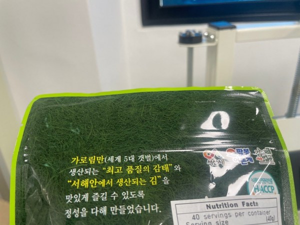 김자반중에서도 고급제품인 감태 김자반을 계량기로 소분하고 왼쪽에 있는 밴드실러로 바로 실링해서 포장을 완성할수 있습니다.