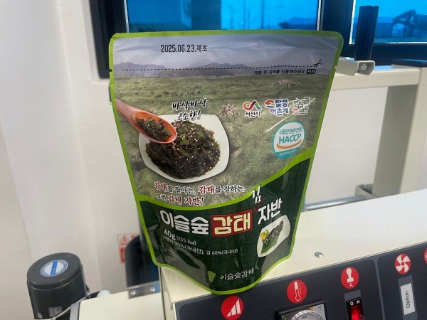 식품 스탠드 파우치 실링하는 수직형밴드실러, 수직밴드실러 추천(팔봉계어촌계)