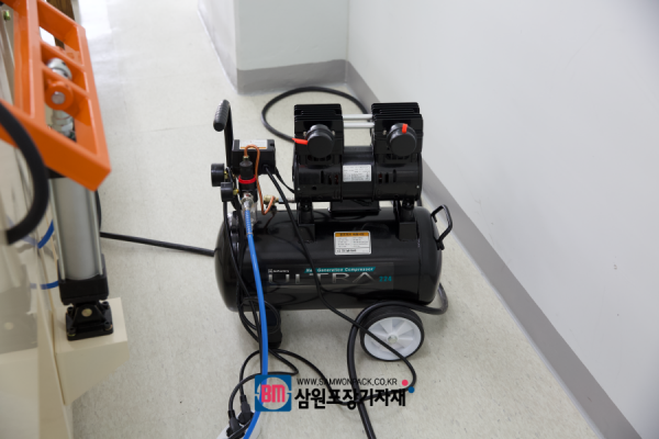 수축터널의 엘실러는 공압식으로 컴프레셔가 필요하며 삼원포장에서는 실내에 맞게 저소음 컴프레셔를 설치해드리고 있습니다