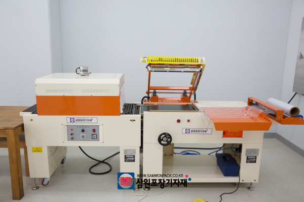 반자동수축포장기는 엘실러와 수축터널로 이루어져있으며 엘실러를 통해 수축필름을 실링, 제단하고 터널을 통과하면 열수축에 의해 수축포장하는 포장기계입니다