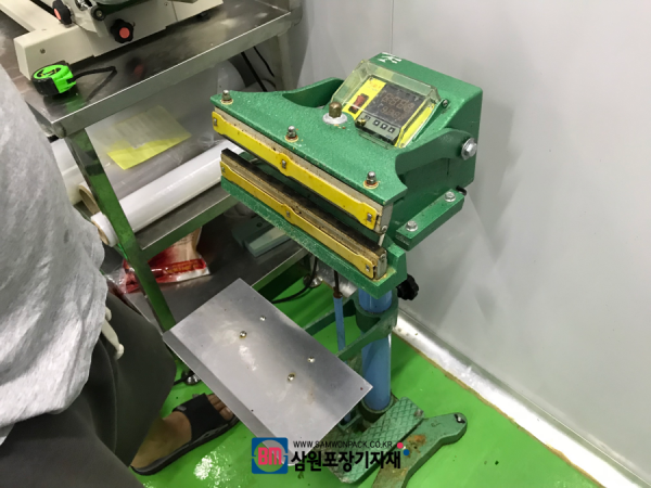 기존엔 수동 페달식 비닐접착기를 사용하셨는데 빠르게 실링할수 있지만 날짜등의 날인기능이 없고, 작업자가 제품을 직접 들어옮기고 내려야하는 단점이 있습니다.