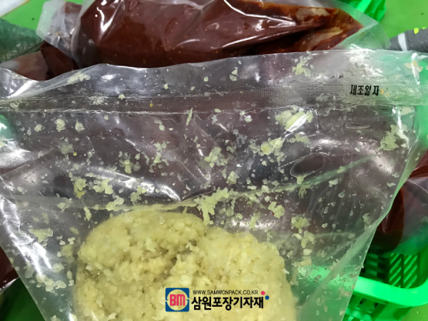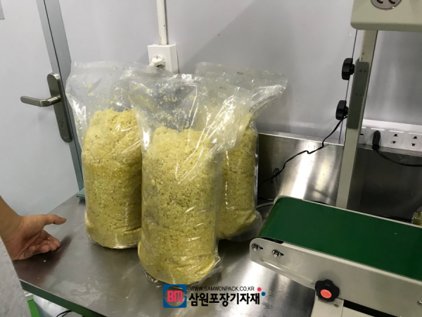 마늘양념을 비닐 포장했는데요 4.5kg정도 되는 대용량 파우치로 다진마늘외에도 다양한 반찬, 양념재료를 포장할 예정입니다