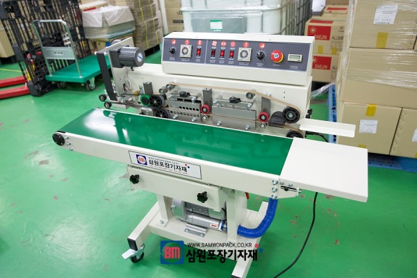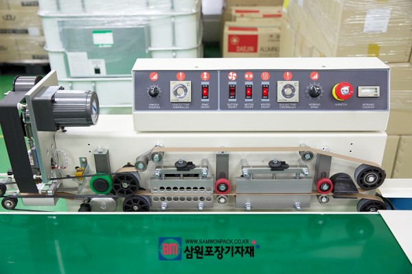 비닐접착을 하는 실링기 기능을 가진 밴드실러로, 날인도 기본입니다(유통기한, 제조일자, 까지)