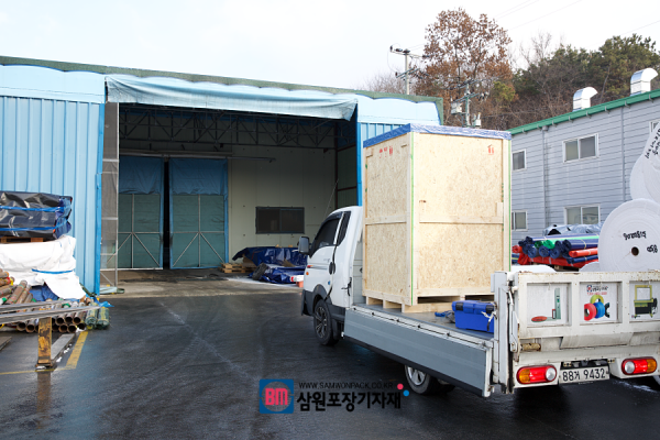자 이제 우드팩킹된 탭핑기는 다른 자재와 함께 부산항으로 가서 선적될 예정입니다.