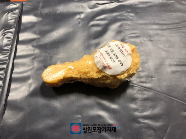 L실러로 제품사이즈보다 1~2cm 정도 남게 수축필름을 제단하고 수축터널을 지나가면 저렇게 팽팽한 모습의 수축포장이 완성된답니다.