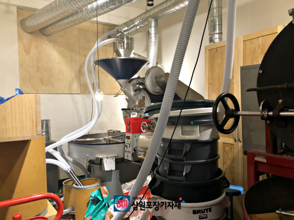 기존의 로스팅기와 함께 빠른 작업이 가능해지고 작업인력도 최소한으로 원두 로스팅과 계량 포장이 가능해졌네요