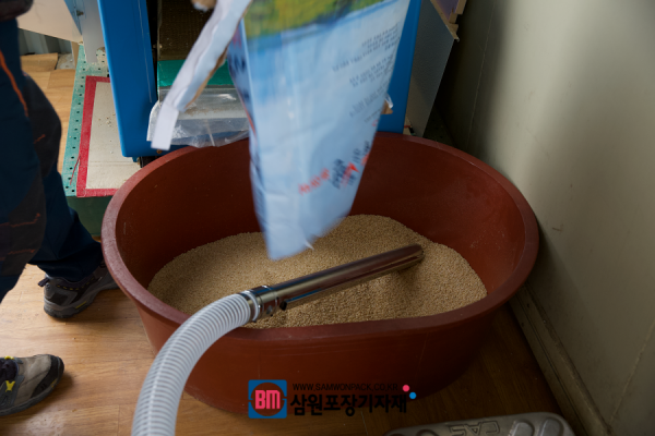 우선 외부에 있는 정미기에서 정미된 쌀을 곡물이송기로 빨아들이고