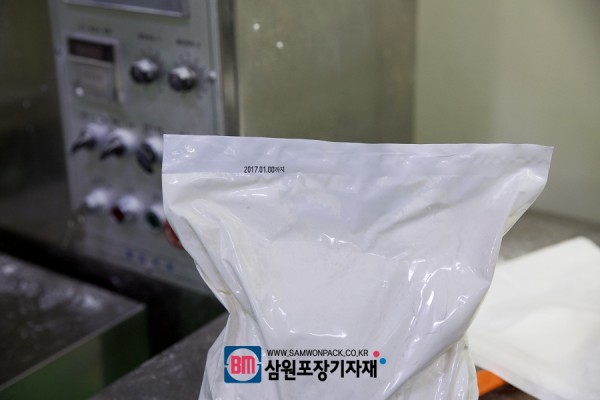 비닐접착과 날인을 동시에 하는 포장기계로 오른쪽에 보시는 계량기를 통해서 제품을 담은후 비닐을 세워서 통과시키면비닐접착과 제조일자, 유통기한, 날짜등을 날인해주는 수직형 밴드실러입니다.