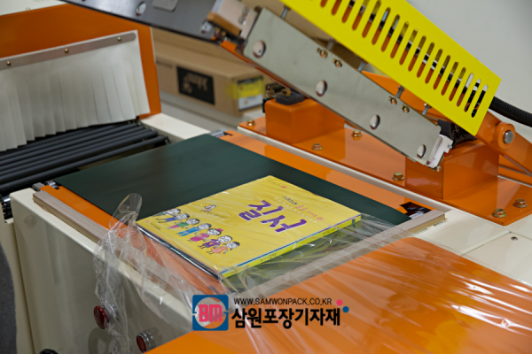 반자동 엘실러와 수축터널로 이루어진 반자동 수축포장기는 수축필름에 책을 넣고 공압식 컴프레셔로 작동하는 L실러에 의해 책을 열제단후 수축터널로 이동해 열수축하여 포장하는 기계입니다.