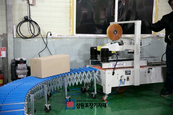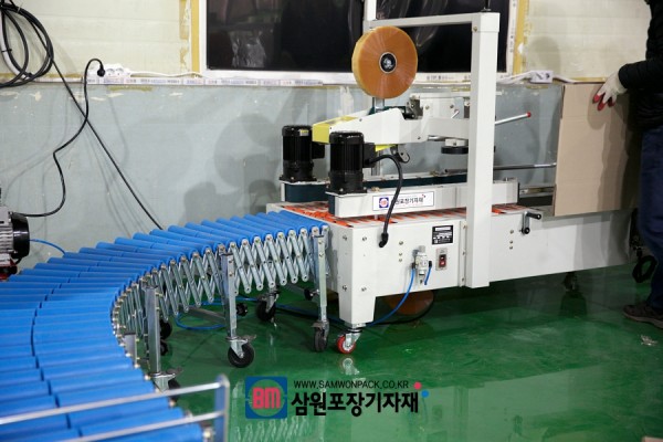 얼마전 (주)미로에도 납품한적이 있는 모델인데요, 하부제함기 사이즈에 제함기와 상하부테이핑기 기능을 갖고 있고 상품을 적재하면서 박스의 상하부를 동시에 포장해주고 있는 모델이라 인기가 많습니다