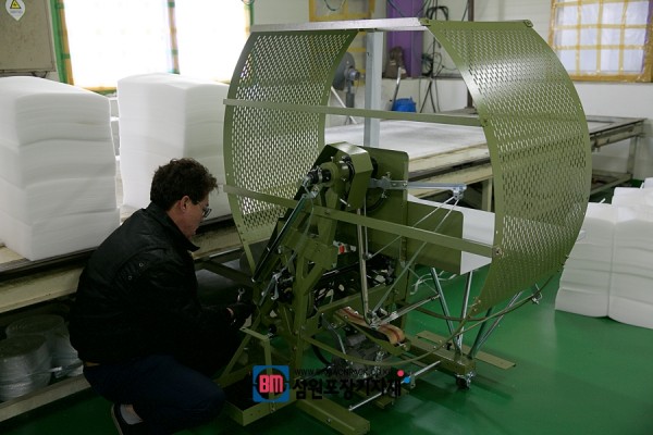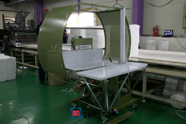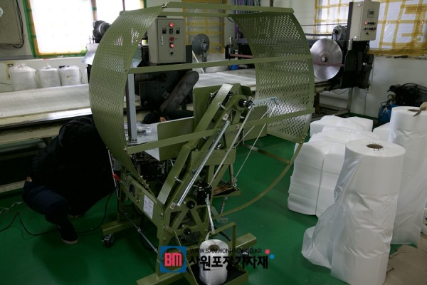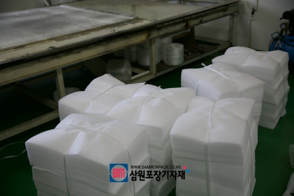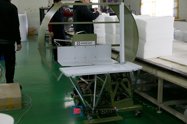 완충제도 기계가 제단하고 포장까지 결속기로~