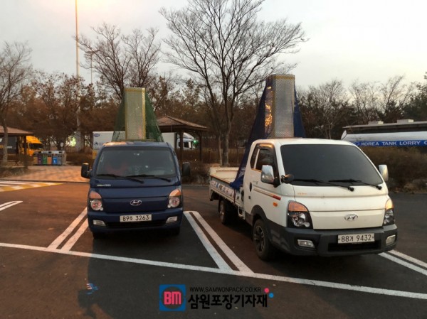 출고된 랩핑기의 수가 많아서 차마다 랩핑기를 실고서 전국을 방문하였답니다