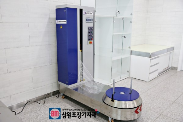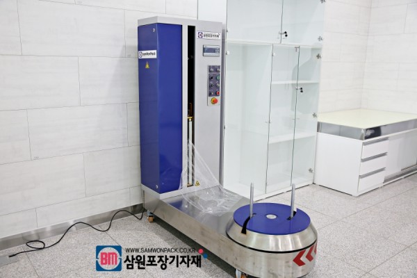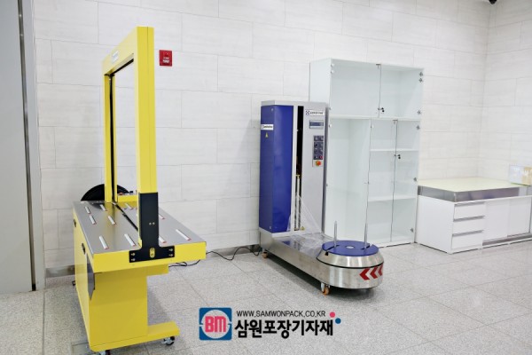 뒤에 설치된 수하물 랩핑기(미니 랩핑기)입니다.