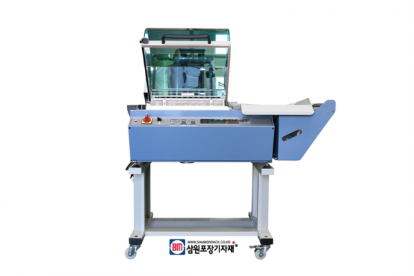 챔버형 수축포장기는 필름 L자 제단기와 터널의 기능이 합쳐진 일체형 모델로 챔버는 투명케이스로 되어 있어 포장과정을 육안으로 확인가능하며 작은부피로 공간이 협소한 작업장에 추천하는 모델입니다