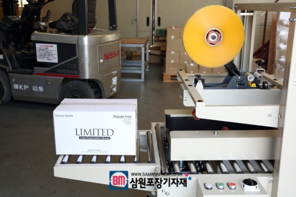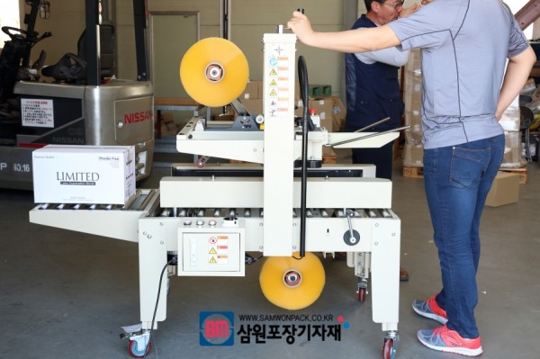 반자동 탭핑기는 박스의 상하부를 동시에 테이핑해주는 기계로 위 모델은 국산에 비해 저렴한 가격에 좋은성능을 보여주어 작업장에서 인기가 많은 모델입니다.