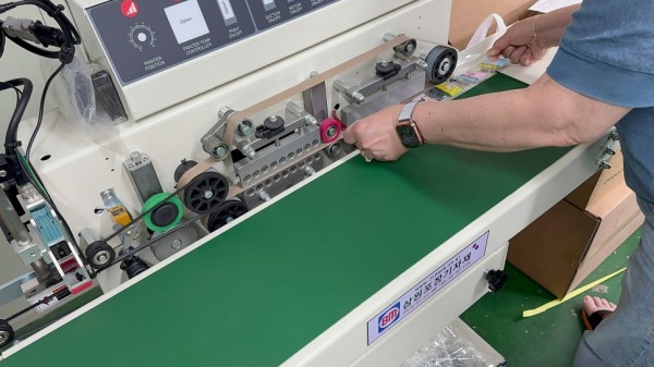 온도조절장치로 각종 비닐 파우치별로 세밀한 온도 조절이 가능하며, 실링후 날인작업으로 제조일자, 유통기한, 날짜 등을 날인할 수 있습니다.