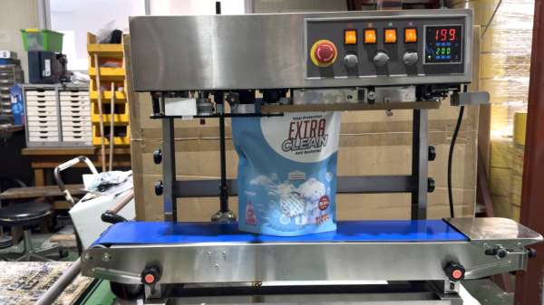 스파우트 파우치, 스탠드, 액상파우치를 실링하고 날인까지 하는 수직형밴드실러!