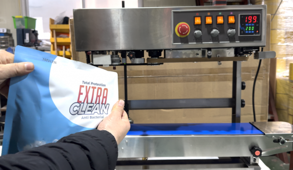 밴드실러의 큰 장점은 실링과 동시에 날인이 가능하다는 점인데요, 비닐접착기를 사용하면 실링후 날인을 별도로 해야되고 작업이 연속적이지 않은데 밴드실러는 연속 작업에 실링과 날인이 동시에 작업되기 때문에 작업효율이 뛰어납니다.