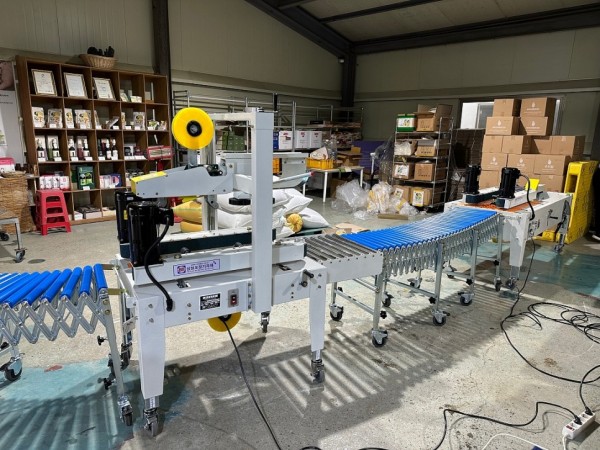 박스 하부 접어주고 제품담고 테이핑까지, 박스포장 자동화 간편하게(우리원)