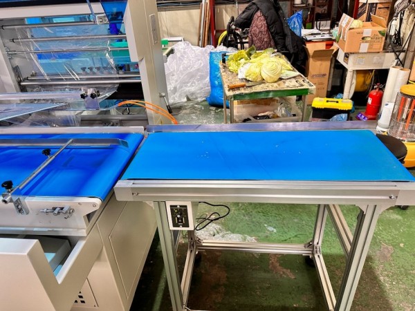 수축실러와 연동되는 자동컨베이어가 제품을 공급해주면