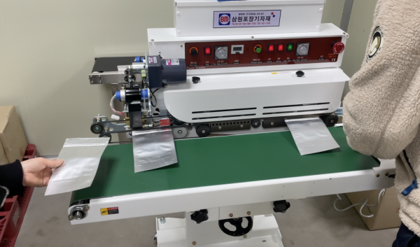 지퍼백 씰링하고 날인하는 수평형밴드실러, 밴드실러 납품기(주.이래에프앤씨)