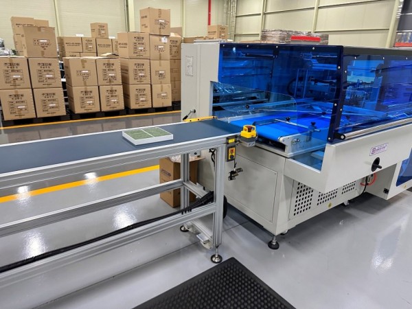 현장에서 전동컨베이어를 투입구에 연결해 공급부터 비닐실링, 배출까지 자동으로 작업될수 있게 설치했으며
