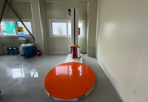 - 랩핑기의 시작 버튼을 누르면 테이블이 회전하면서 자동으로 제품을 감싸줍니다.