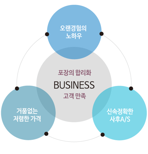 또한 업체의 체계적인 관리가 이루어지므로 고객의 만족도가 높이 평가되고 있습니다. 삼원포장기자재, (주)삼일팩은 “최고의 품질이 곧 신뢰다”라는 신념으로 포장의 합리화를 이룩하고 있으며, 책임감있는 모습으로 믿음과 신뢰를 바탕으로 철저한 AS로 고객의 만족도에 보답하고 있습니다.