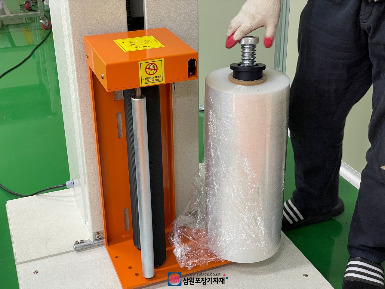 랩원가절감과 제품이 가벼운 제품포장등에 유리한 랩핑기입니다