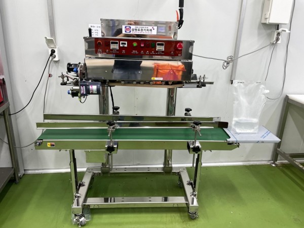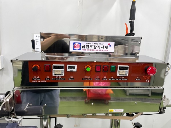 다양한 종류의 스탠드파우치를 실링하고 날짜 날인이 동시에 작업되며, 스테인레스(SUS)제작으로 부식도 없이 위생적인 사용이 가능합니다