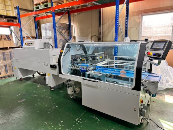 이탈리아 미니팩 제작의 자동 L실러와 자동수축터널 셋트로, 실링바 사이즈 600*400, 제품높이 최대 240mm 까지 수축포장이 가능합니다~
