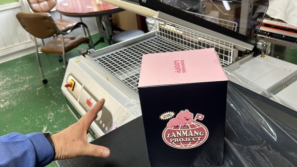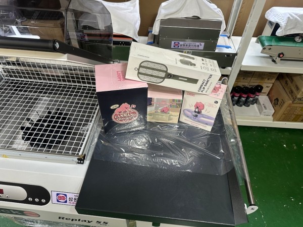 캐릭터상품, 전자제품등을 담은 박스포장 제품의 비닐수축포장기 작업을 진행했습니다