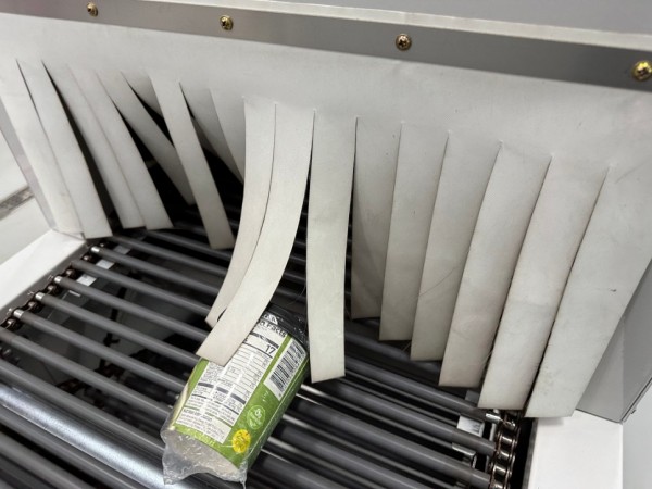 수축필름이 실링후 수축터널에서 열수축후 배출됩니다.