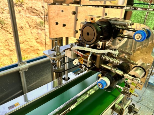 액상파우치, 수직형파우치로 각종 액상, 쌀, 잡곡, 원두, 커피등을 담은 파우치를 실링하고 날인하는 수직형밴드실러
