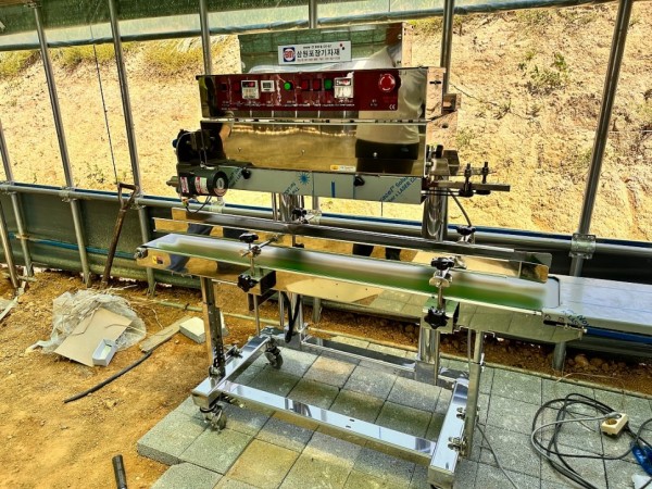 잡곡, 곡물 쌀 등을 실링하기 위해 발주한 수직형밴드실러로 스텐레스로 제작해 부식없이 사용할수가 있습니다.