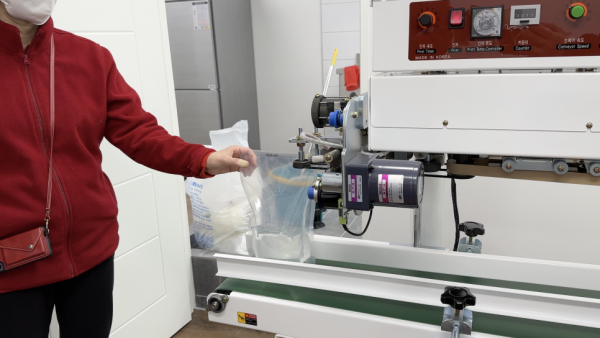홍어무침을 비닐 실링하기 위해 수직밴드실러를 직접 시운전설치했습니다.