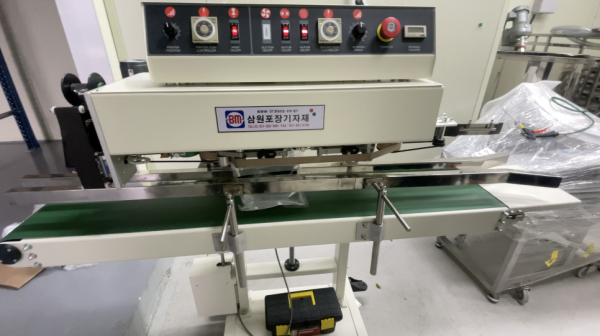 소비기한 날인을 지원하고 가이드 구입 할수 있는 수직형밴드실러, 삼원포장기자재에서 상담받으세요