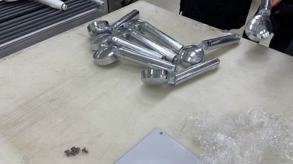 크롬도금한 샤워기, 플라스틱 샤워기, 필터등을 비닐 수축포장하기 위해 여러번의 테스트를 걸쳐