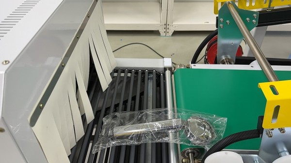 자동엘실러의 컨베어에 투입된 제품은 자동엘실러의 센서가 제품을 감지해 순차적으로 자동 실링후 컷팅, 이송되며